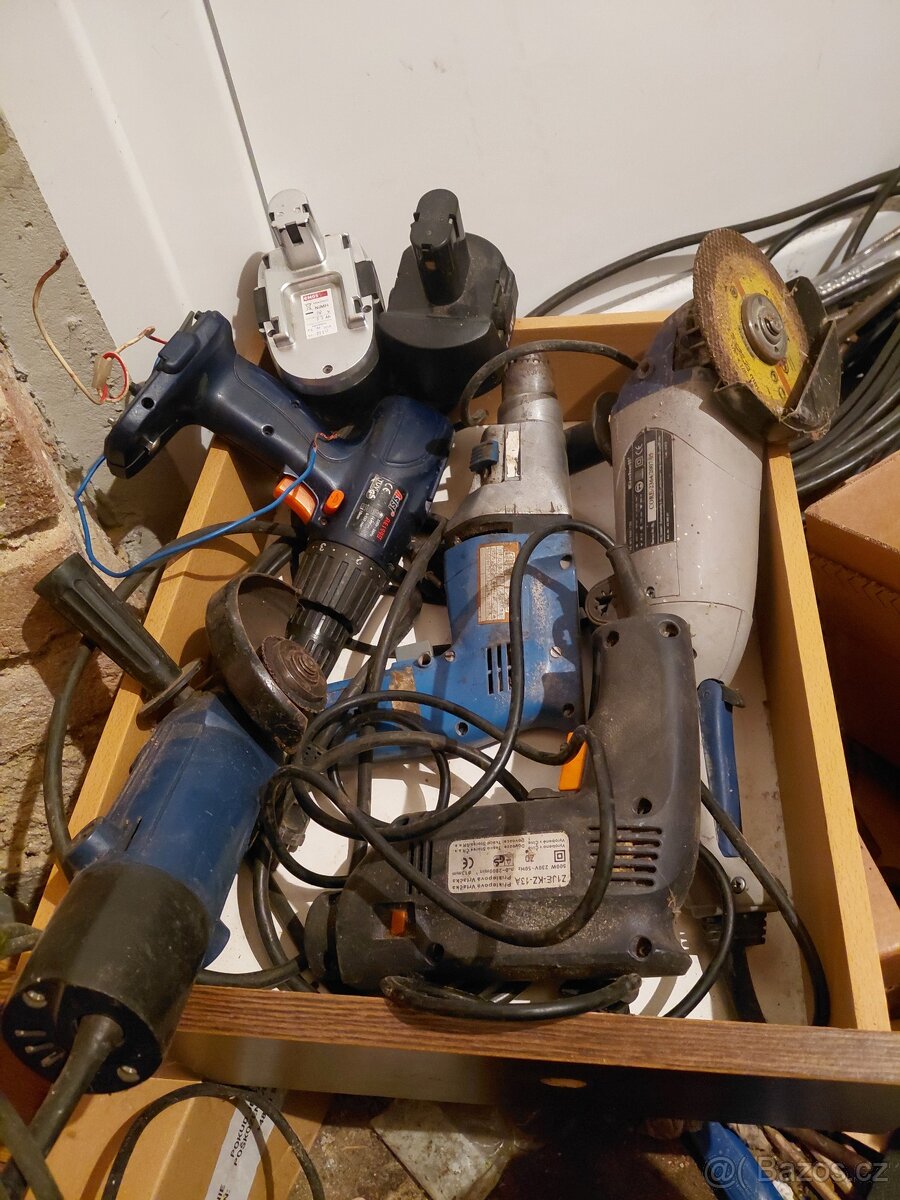 Aku nářadí, také elektrické přímo do zásuvky a motorová pila.