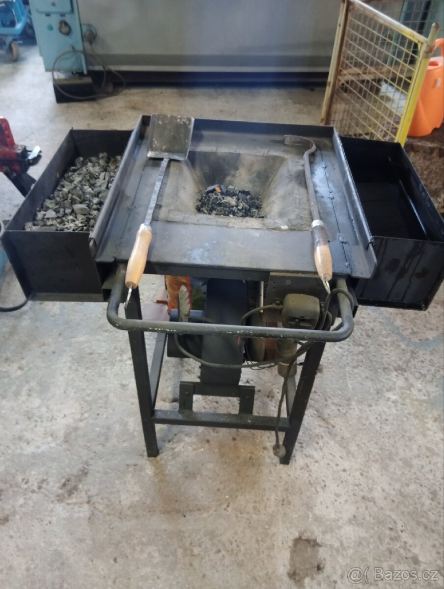 Prodám málo používanou mobilní kovářskou výheň s elektrickou turbínou a šamotovým ohništěm.