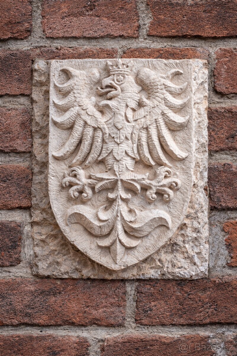 Kamenné erby jsou vysekány do přírodního pískovce.