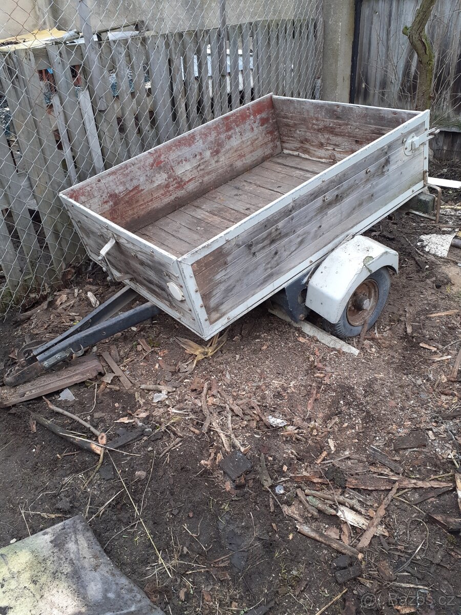 Prodám vozík za auto bez dokladů. Vhodný za frézu nebo čtyřkolku. Nutná oprava kol. Cena dohodou.