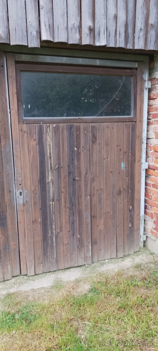 Stará dřevěná vrata se sklem bez rámu, výška 237 cm, šířka 2x170 cm. Tel 732 968 589.