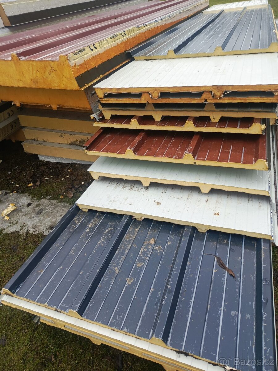 Prodám střešní panely síla 16 cm,délka 3,90m -7,10m celkem 80m cena 550,- kč m2 dále síla 3,5 cm, délky 4m až 6m celkem 102 m - různé barvy cena 390m2.Cena 390,- kč m2. Více na 704 099 850