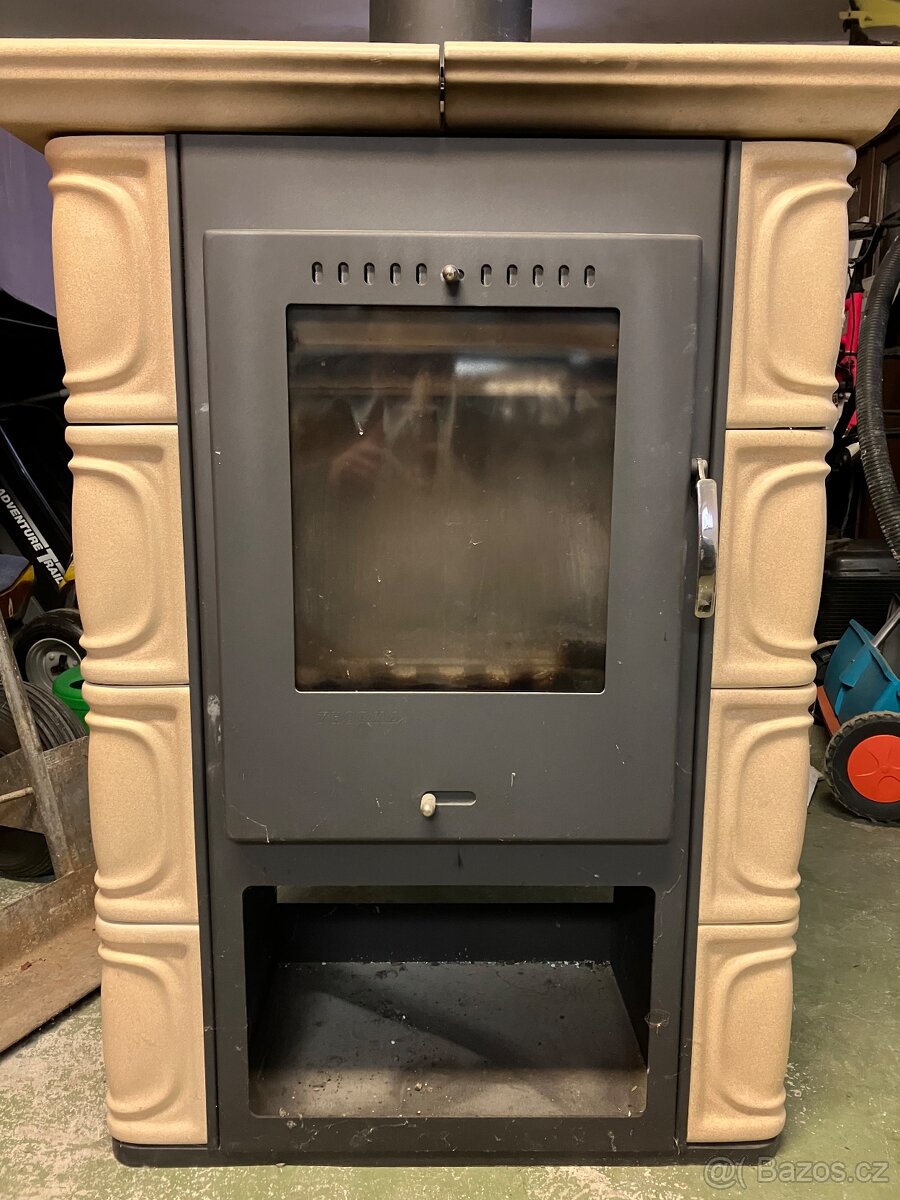 Prodám krbová kamna 7 kW, zachovalá, neprasklé sklo. Ke kamnům přidám silnostěnná kolena (jedno s regulační klapkou)