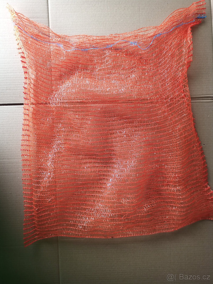 Prodám rašlové pytle 60 x 50cm s úvazkem, červené barvy. Jsou jednou použité, neošpiněné.