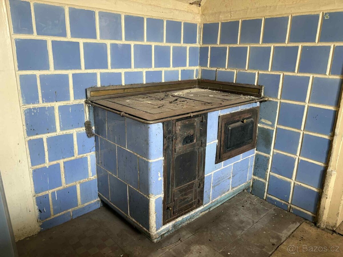 Kachlový sporák - asi Vamberk, nálezový stav - [23.1. 2026]Prodám kachlový sporák, nálezový stav. Naposledy v provozu před osmi roky. Vývod kamen vpravo (při pohledu zepředu).Kachle nejsou prasklé, pláty jen zrezlé. Jedna noha ohlá díky nevhodné manipulaci. Pravděpodobně zn. Vamberk. Stáří kamen neurčité,. L ...