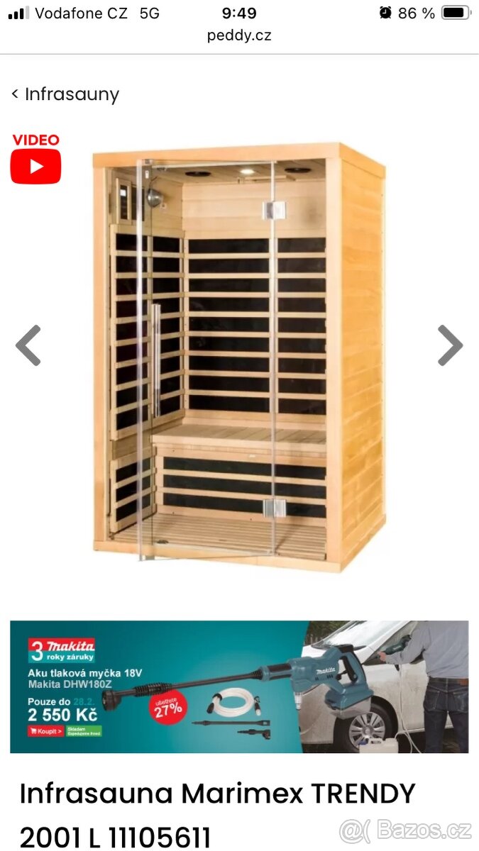 Prodám málo používanou infrasaunu Marimex pro 2 osoby, popis viz.foto. Momentálně je postavená - možnost odzkoušení. Pomohu rozebrat a naložit. Návod součástí. Odvoz jen vlastní, nezasílám.