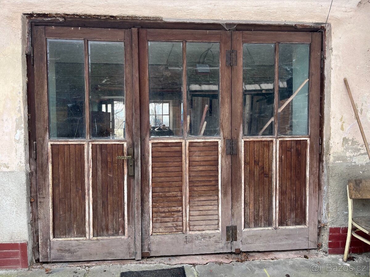 Vrata - [22.2. 2026]Stará dřevěná vrata se sklem bez rámu, výška 237 cm, šířka 2x170 cm. Tel 732 968 589.