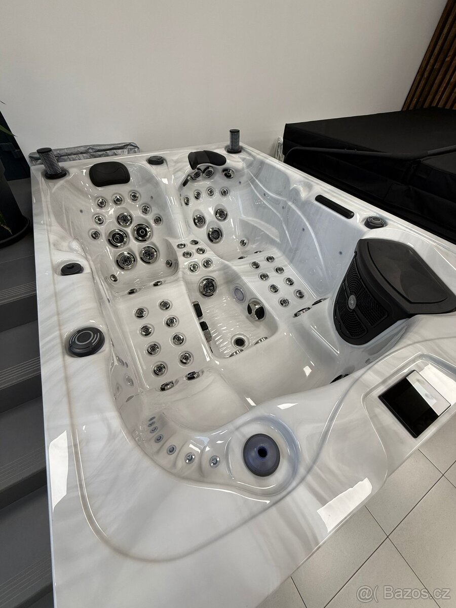 Čistotu vody udržuje ozonizátor. Vana je vyrobena z kvalitního akrylátu od Aristech Acrylics a ovládání zajišťuje přehledný panel Balboa.