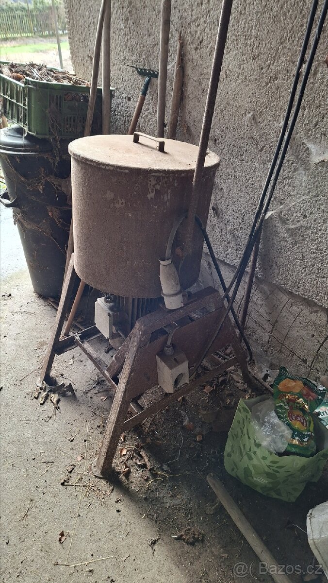 Prodám drtič kostí. Šrotoval jsem v něm i obilí. Hrnec průměr 45 a výška 40cm, výklopný. Motor 3 kw. Funkční.