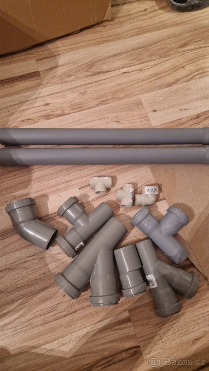 Prodám přebytky odpadového potrubí, nové + lepidlo na PVC (z toho bylo odebráno, ale minimum). Viz foto