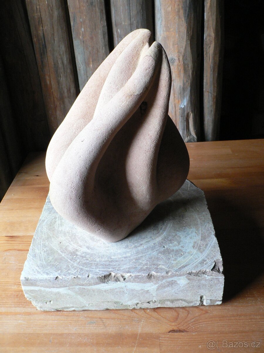 Pískovec, ruční práce, rozměry asi 25x20x20 cm. Socha je vhodná převážně do interiéru.