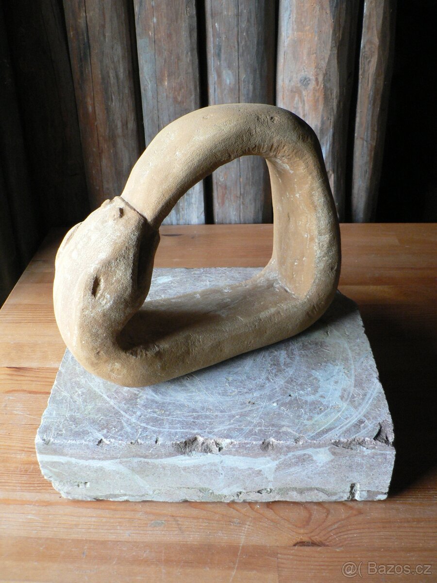 Pískovec, ruční práce, rozměry asi 10x30 cm. Socha je vhodná hlavně do interiéru.