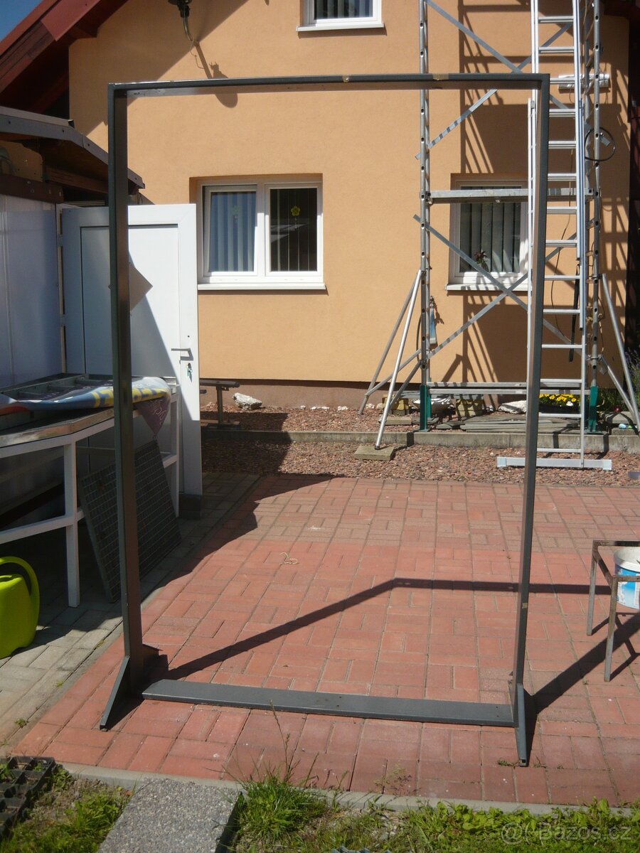 Prodám konstrukci o rozměrech: výška-211 cm, šířka-139 cm, profil- 12,5x2,5 cm, základna 60 cm. Barva asi komaxit. Havířov