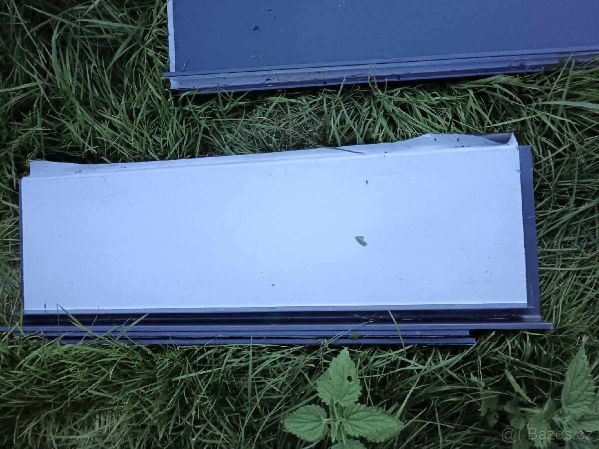 Prodám venkovní parapety, šedé barvy, nové, nepoužité, ještě s ochrannou fólií, 300Kč kus: