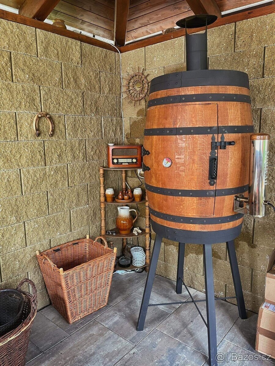 Sudová udírna - [20.2. 2026]Prodám originální Sudovou udirnu vyrobenou z dubového sudu který byl plněn vínem (whisky) a pojme až 20kg masa. Včetně odkapávacího tácu, teploměru a 10ks nerez. háčků. Uvnitř je dvoupatrová stromeček s možností nastavení výšky.