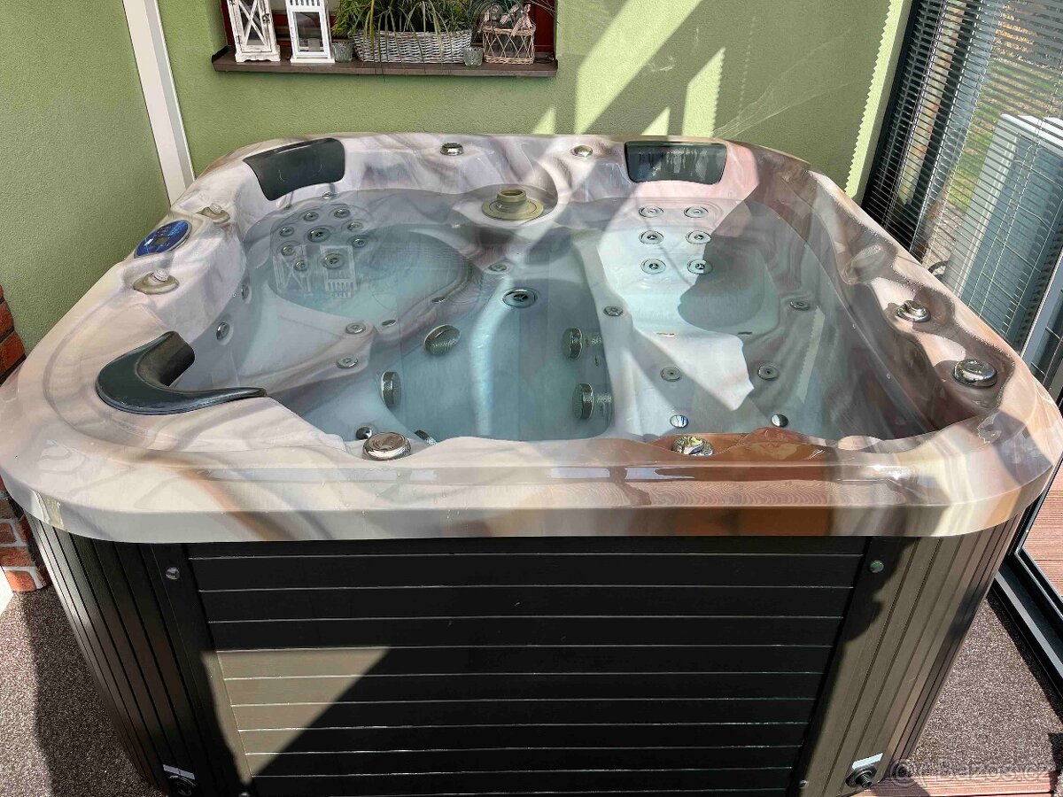 Prodám luxusní výřivku v plné výbavě, 200x200x92cm, pro 4 osoby, celkový počet trysek 59, řídící jednotka BALBOA, Vodopád, Blower, Led osvětlení měnící barvy,Jumbo Jets, vše funkční v provozu předvedu. Termický kryt, Objem 950litrů, váha 300kg, Záruka na skořepinu. Málo využívaná, moc pěkná umístěná v zimní zahradě, Servisovaná.
