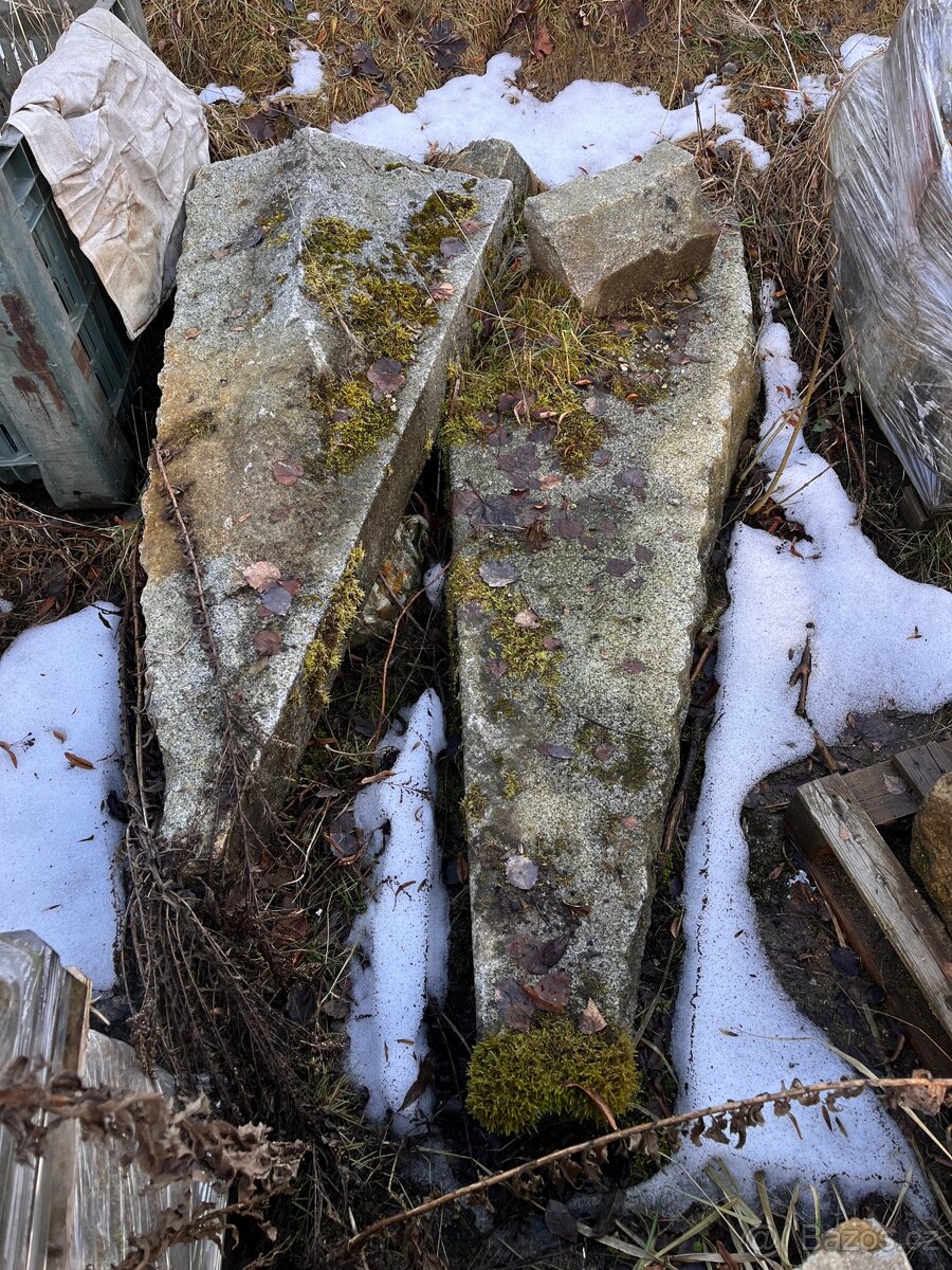 Dva kusy schodů ze žuly ve tvaru trojúhelníku.