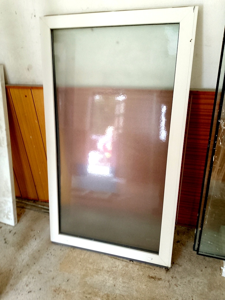 Plastové fixní okno, neotevírá se, rozměry jsou 89 x 156 cm,sklo je neprůhledné, světlo propouští normálně.Je pěkné. Je možná doprava.