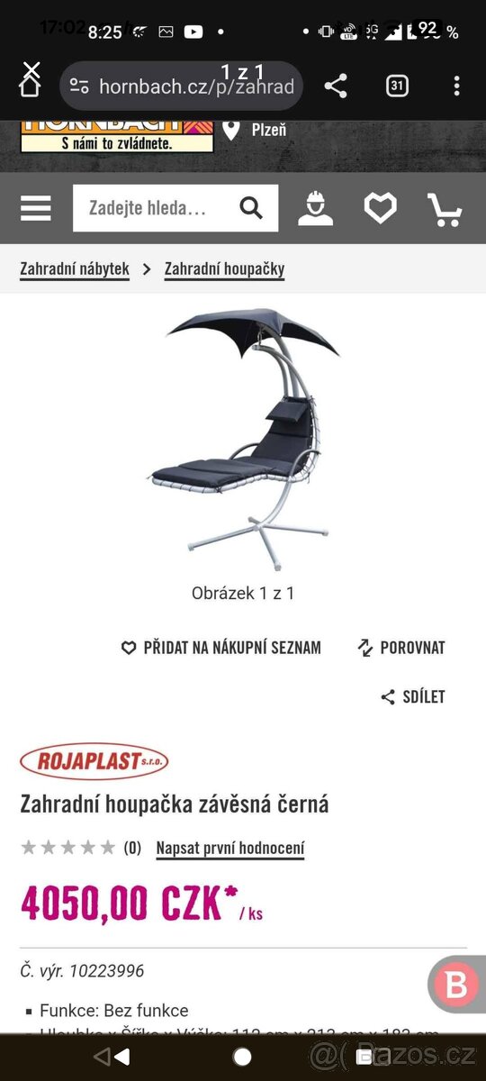Dobrý den, prodám zahradní houpačku. Osobní předání