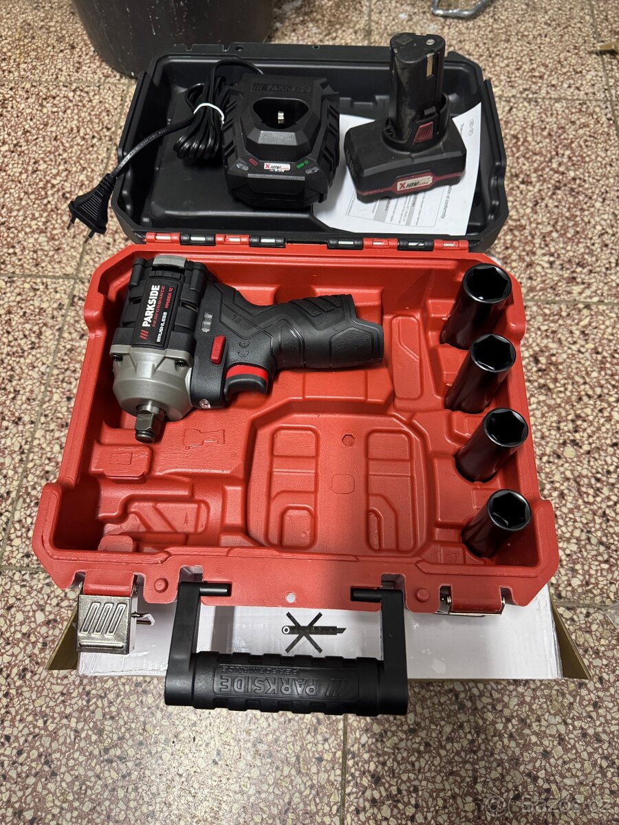Rázový utahovák - [25.2. 2026]Prodám PARKSIDE PERFORMANCE® Aku rázový utahovák PDSSAP 20-Li B3.Koupeno12/23.Zaruka je na něm 5 let.6 krát sem si sním pomohl u sundání kol auta svého a cosi málo šroubků přišrouboval.