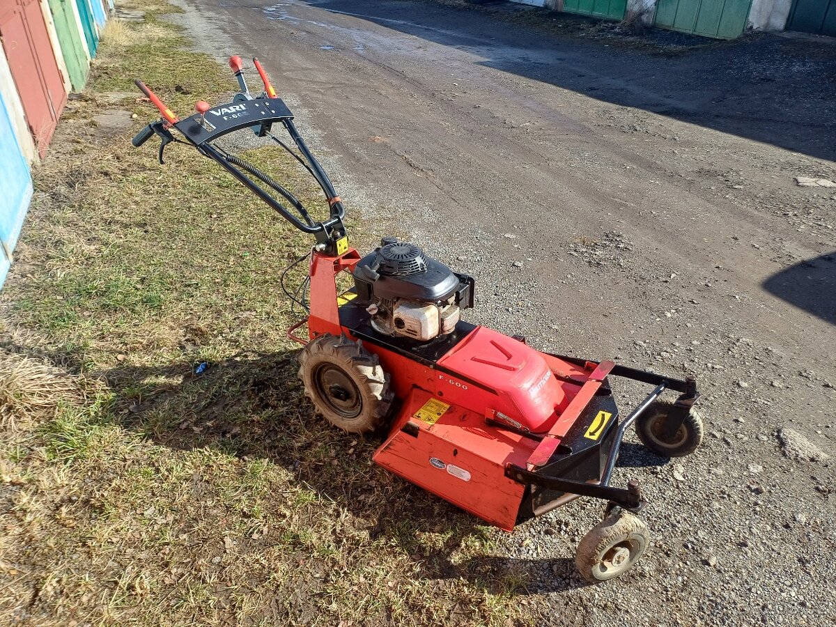 Prodám poloprofesionální mulčovač Vari Hurricane F-600 osazený motorem Honda GCV 190. Výkon 4,8 kw, pracovní záběr cca 60 cm, nastavitelná výška sečení, 3 rychlosti vpřed + zpátečka, výškově i stranově nastavitelná řídítka. Stroj je plně funkční.