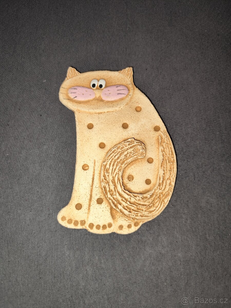 Veselá kočička z keramiky