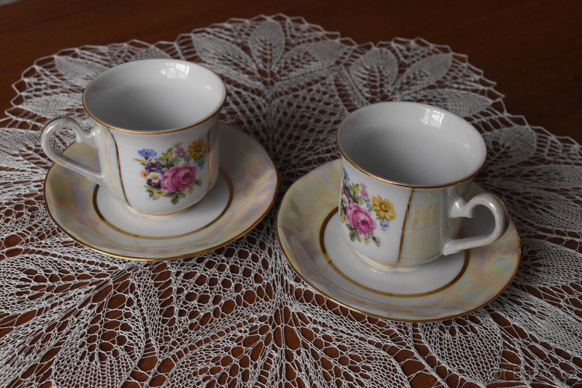 Prodám sadu dvou keramických hrnků s podšálky. Průměr hrnků 7 cm. Poštovné a balné 130 Kč na adresu domů nebo 75 Kč do Balíkovny. Cena za sadu 150 Kč.