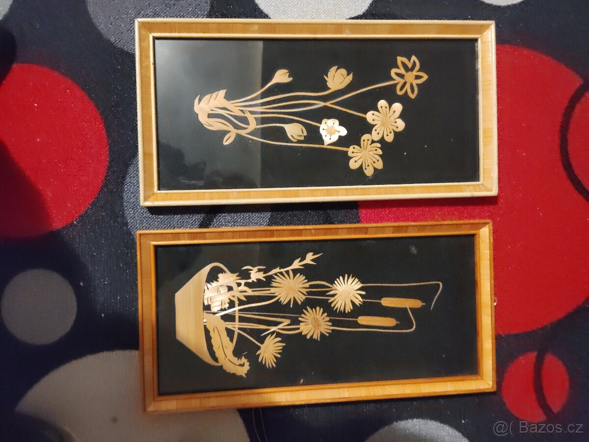 Nabízím dva hezké zachovalé slámové obrazy výška 48 cm šířka 24 cm cena za kus