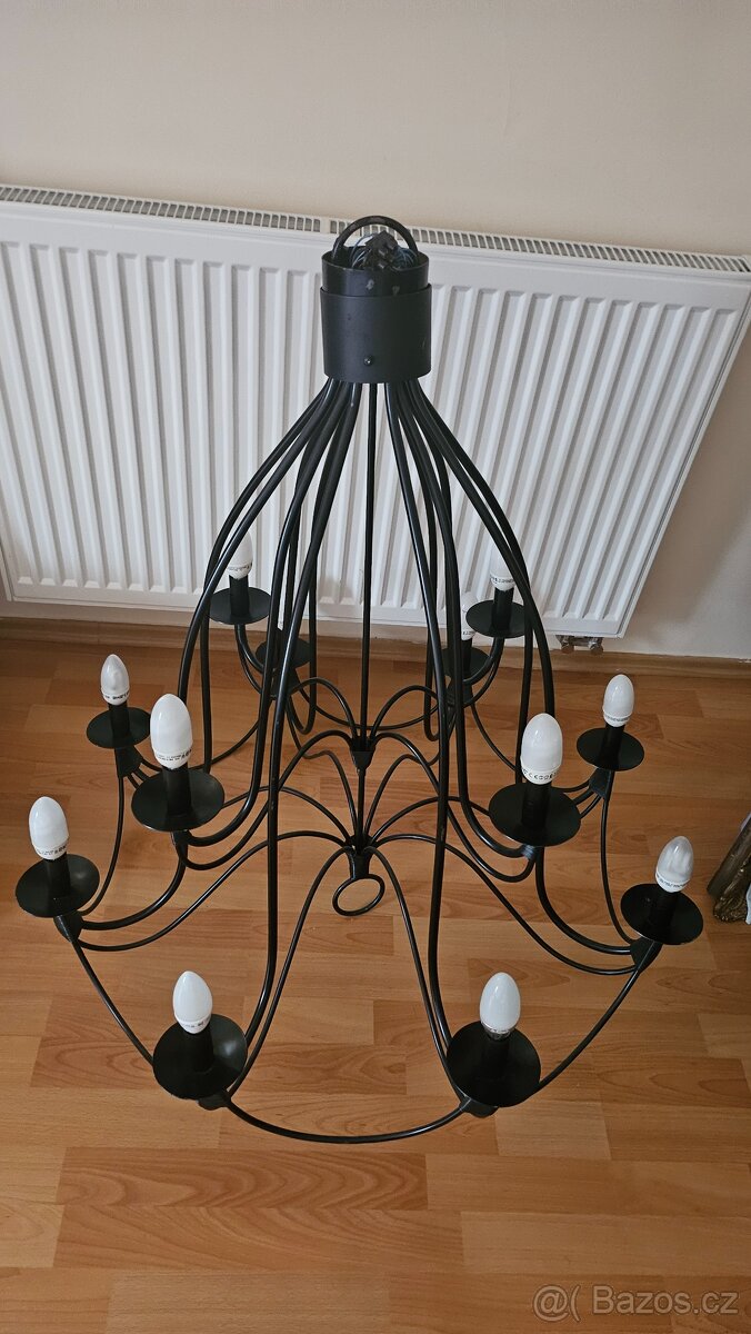 Prodám krásný kovový lustr 12 žárovek, ktery se hodí do většího prostoru jako je obývací pokoj nebo chodba.
