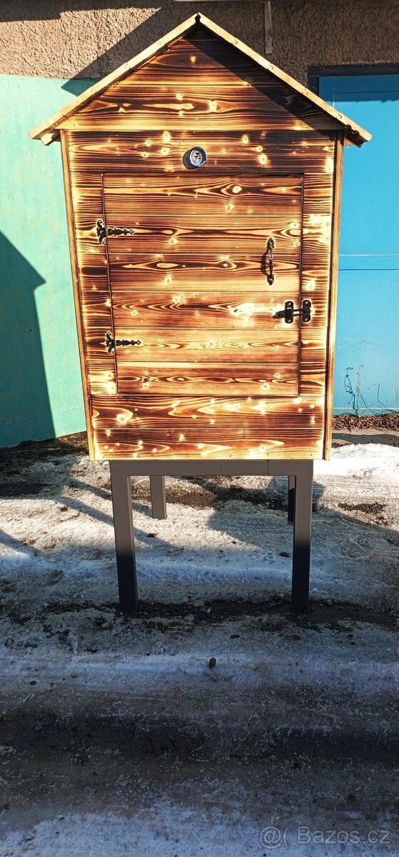 Prodám novou udírnu i podstavcem udírna rozměry 75x70cmx130 podstavec výška 60cm udírna je z palubek 19 mm konstrukce sušené latě 40x50 součástí udírny 8xtyč na pověšení masa teploměr, udírna má sundávací střechu. Havířov rychle jednání sleva