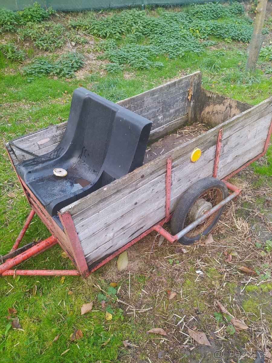 Prodám vozík nevím přesně k čemu je zůstalo to tu po původním majiteli je potřeba povymenovat desky dno je plech vhodné pro kutila cena 1000 Kč