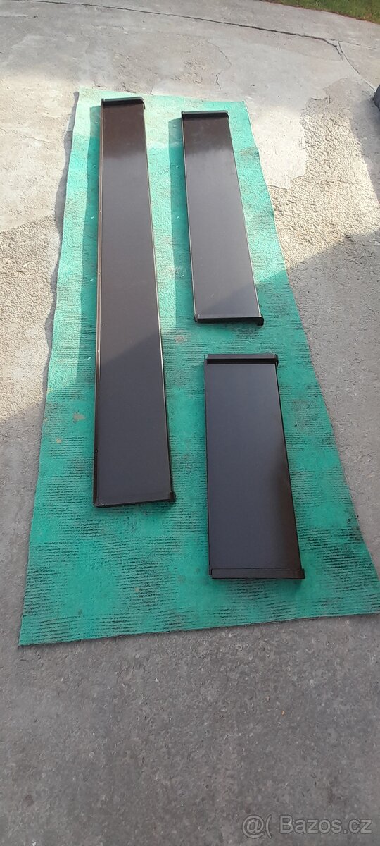 Prodám kvalitní, venkovní parapetní plechy hnědé barvy z taženého hliníku o síle 1,6 mm včetně bočního zakončení a přichycovacích šroubů v celkovém počtu 12 kusů o rozměrech: