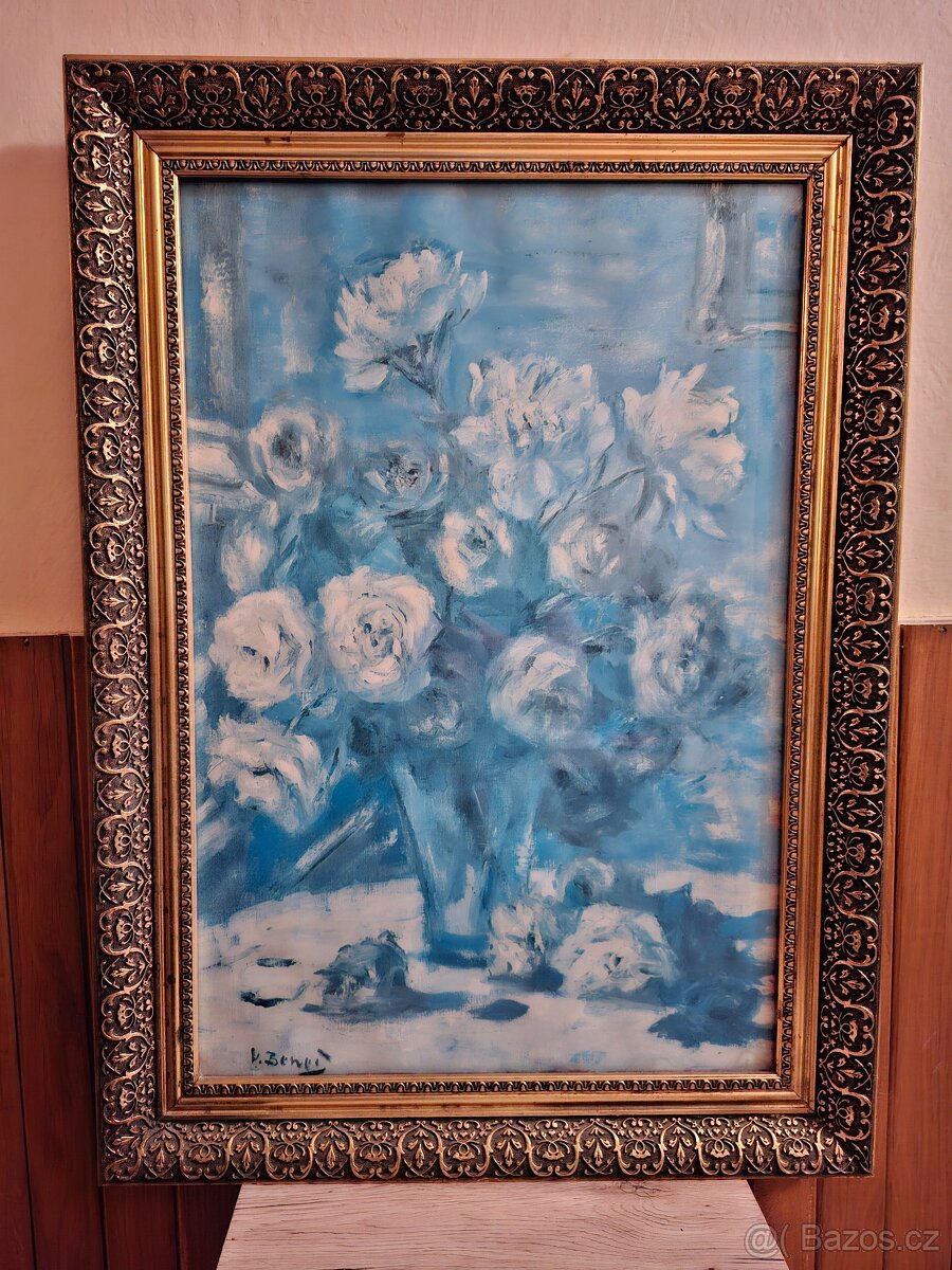 Květiny ve váze, rozměr 50 x 70 cm, zdobený rám