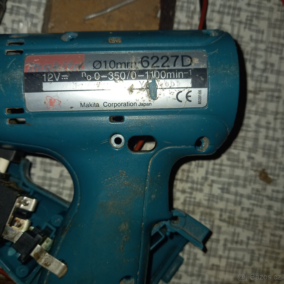 Aku vrtačka Makita 6227D, 12v,vadný motor. 2 baterie, nabíječka.