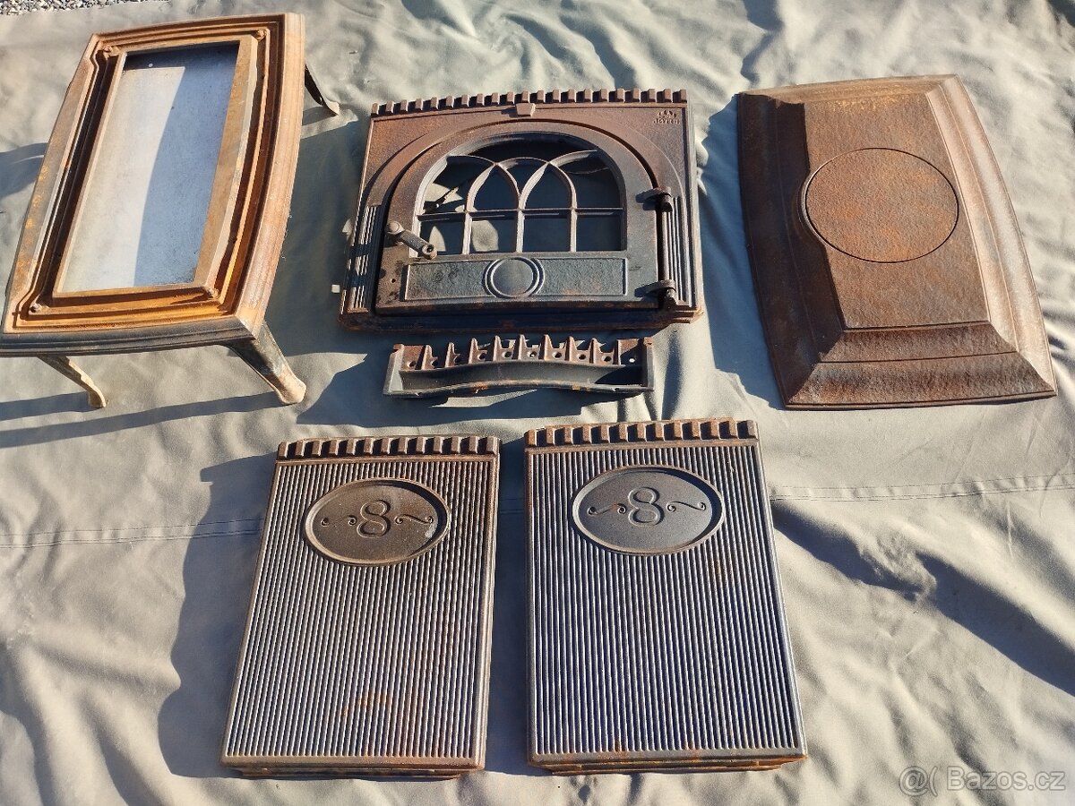 Prodám díly na litinové kamna Jotul f8 použité, dvířka jsou bez skla.
