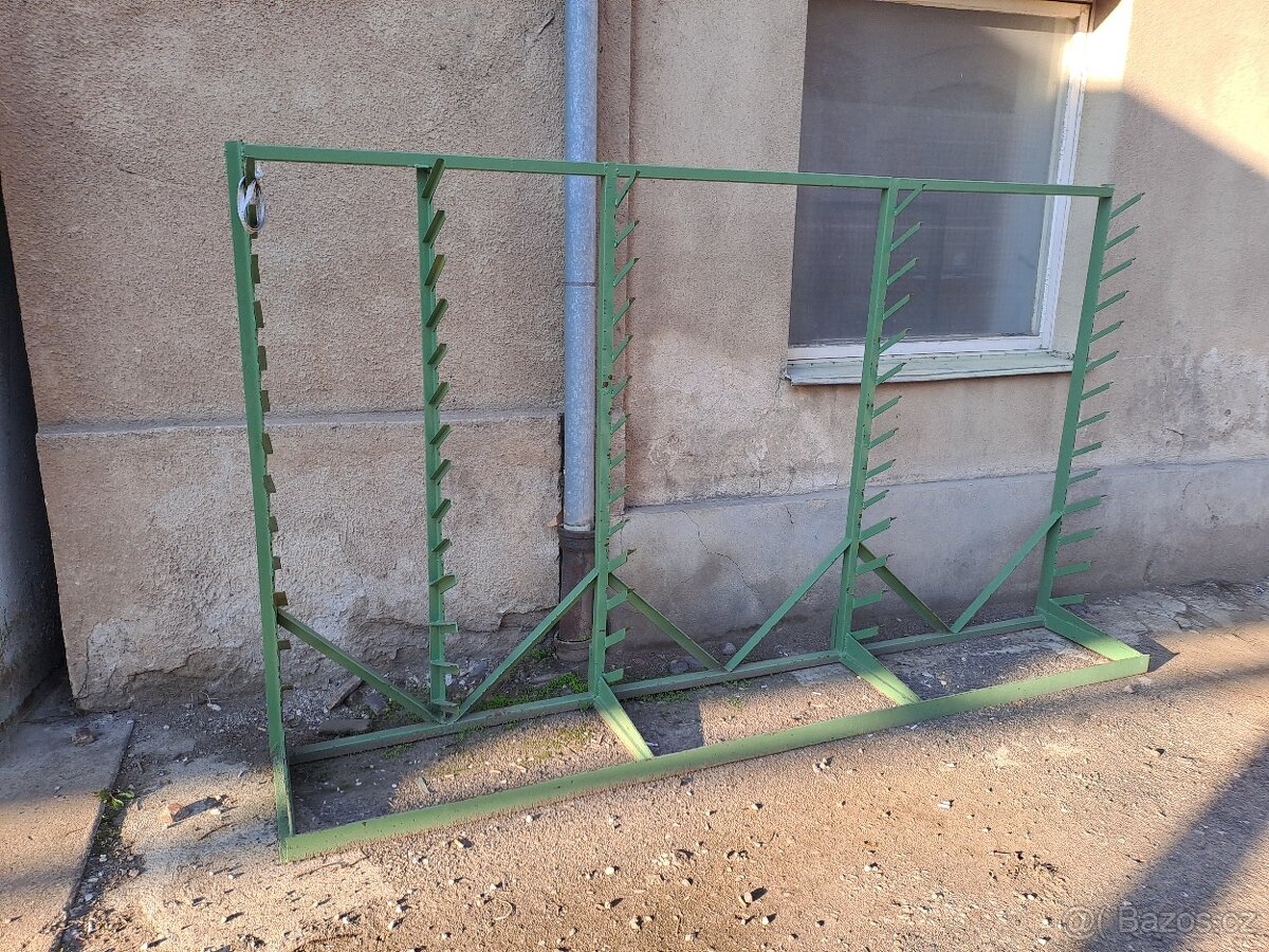 Kovový regal na materiál, tyče. Dlouhý 3 m
