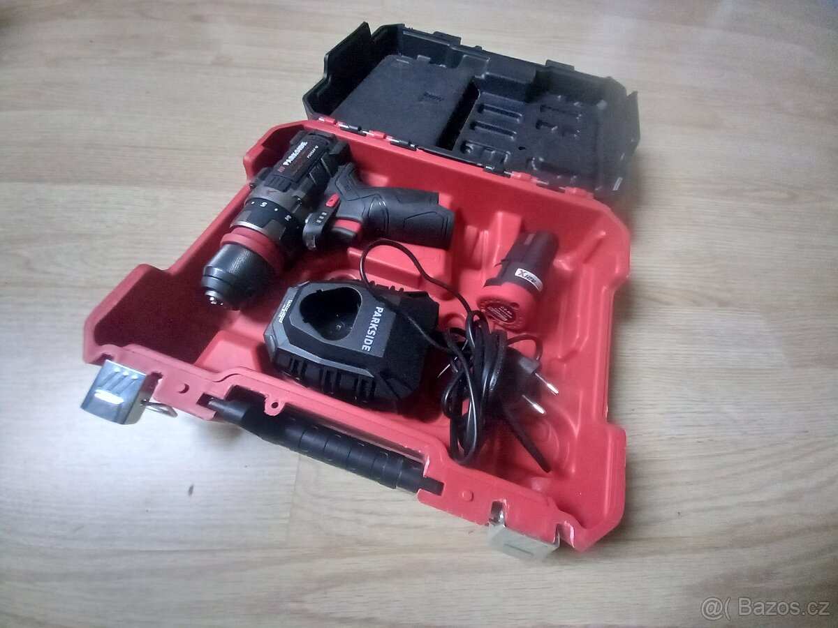 Vrtačka od Parkside z řady performance označení PSBSAP12A1 s příklepem, odnímatelnou hlavou a širokou škálou nastavení.