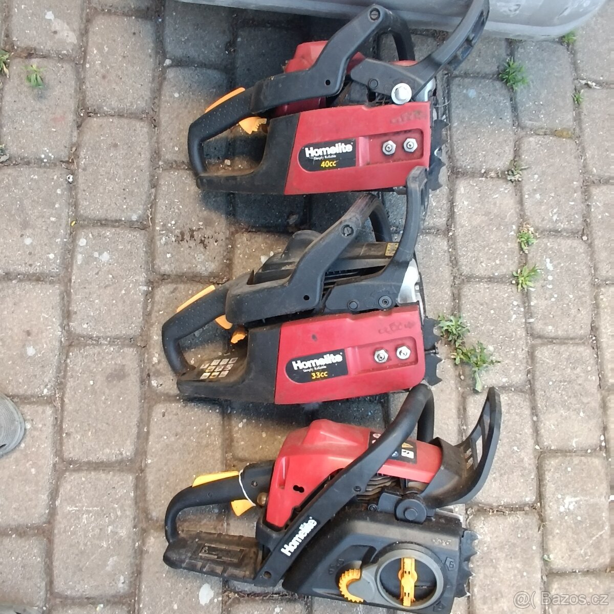 Homelite, řetězovky. Na náhradní díly. Špatně startují, nejdou do otáček. Starter, čerpadlo, klikovka v pořádku. Cena za tři kusy. Z pozůstalosti.