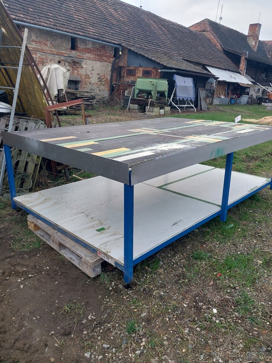 Stůl do dílny - [25.2. 2026]Stůl (ponk) o rozměru d196,5š77v82,5cm. Tloušťka desky 4,5cm, konstrukce jekl 30x30mm,bez povrchové úpravy.