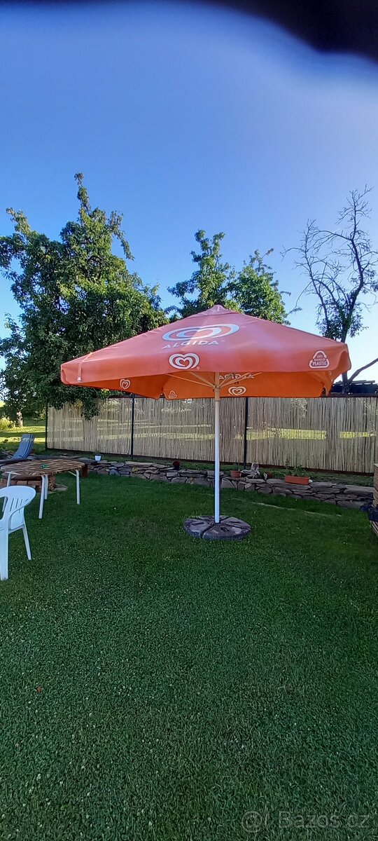 Prodám slunečník průměr 3m bez stojanu.