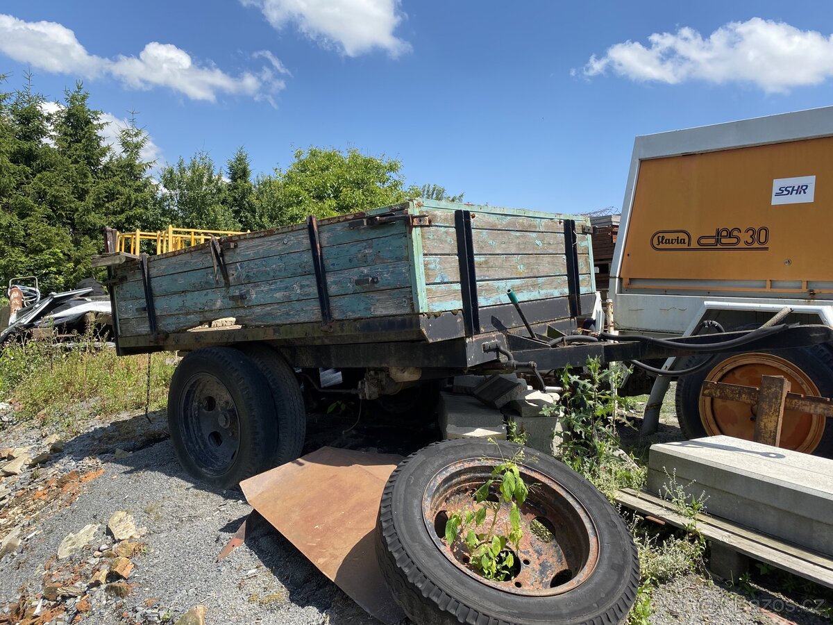 Prodam doma dělaný traktorovy návěs , vlek , vlečka , vozik , vzduchové brzdy , hydraulicky sklapeč , je možno sklopit i bez traktoru díky ruční pumpě , nutno opravit bočnice jinak vše ocelové krásné , sklápěcí Vyškově stavitelna noha , velikost korby 2,55 x 1,85