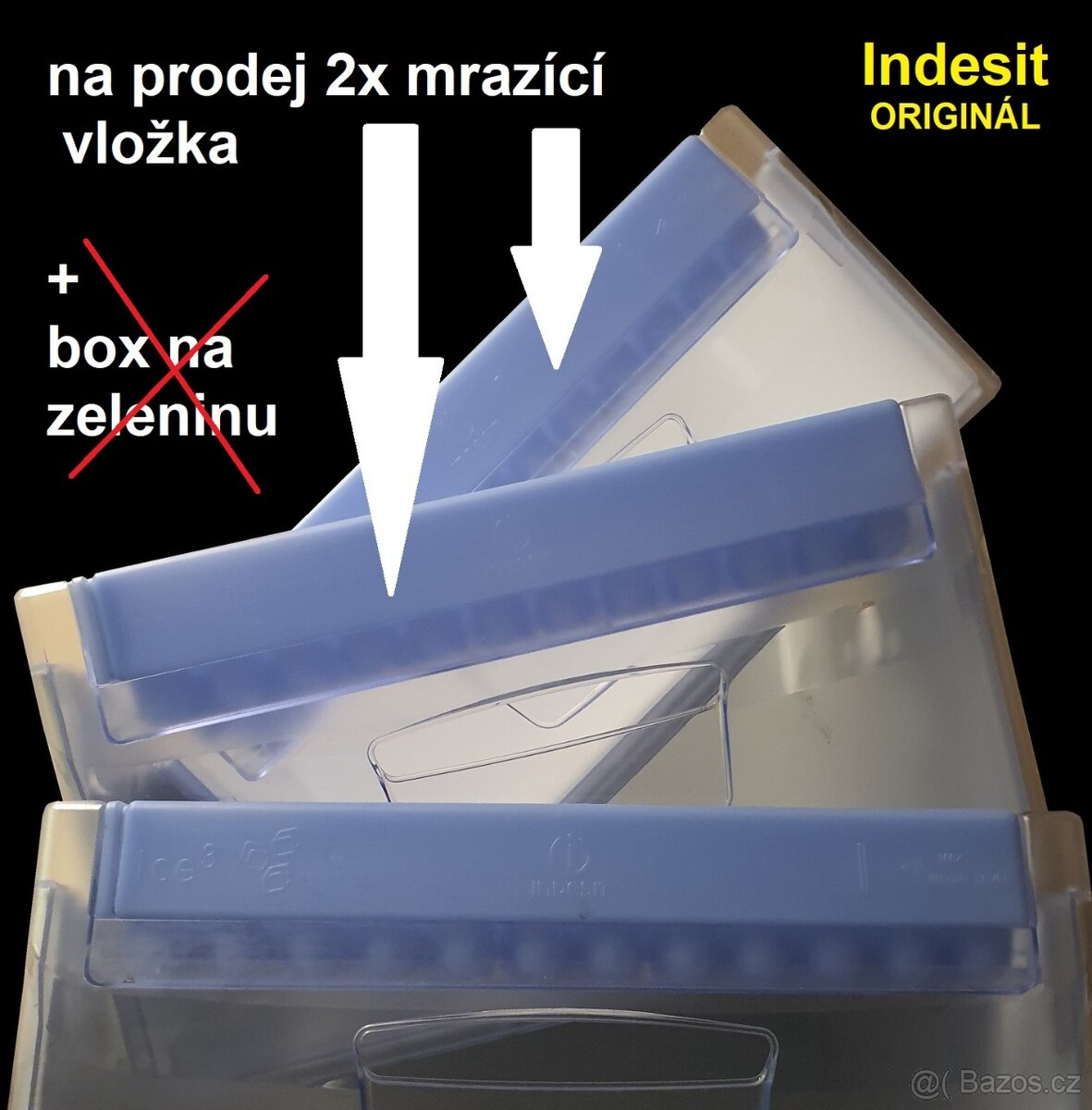 INDESIT LEDNICE – do mrazáku na prodej modrá mrazící vložka – prodám za 99 Kč (k dispozici 2ks, třetí je prodaná). Šuplíky do mrazáku i na zeleninu jsou prodané. Zaslání možné po zaplacení na Zásilkovnu za 100 Kč. SMS NE, nejlépe EMAIL.