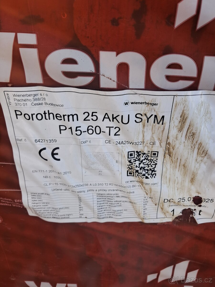 Prodam zbytek 2 palety. Porotherm 25 AKU SYM P15 cena za kus
