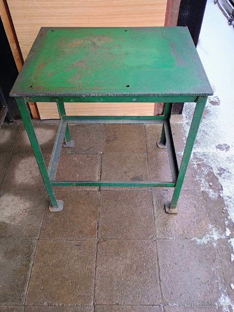 Stůl vhodný na vrtačku, pákové nůžky, svěrák. Rozměr 77x70x56cm. Deska tl12mm kovová, váha cca30kg