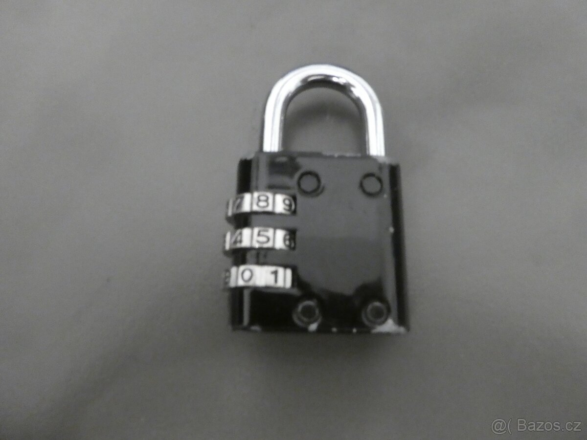 Prodám černý kovový visací zámek na tříčíselný kód. Cena 80,- Kč. Osobní předání po dohodě v Olomouci. Zaslat lze i přepravcem za 75,- Kč nebo 89,- Kč, dle výběru přepravce. Na dobírku nezasílám, zasílám obratem po úhradě ceny a přepravného na účet. Prosím neposílat sms.