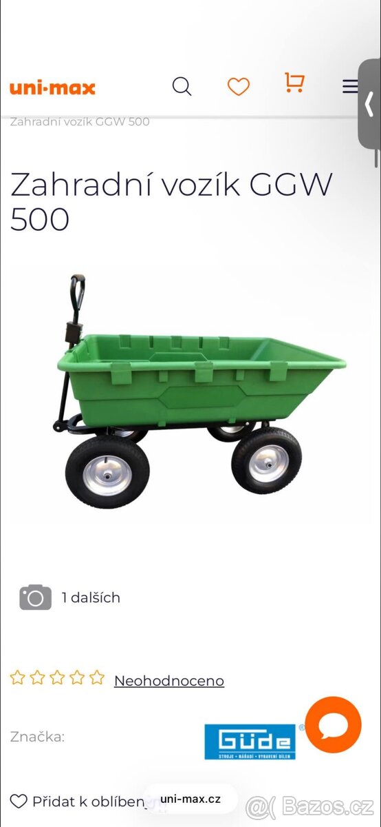 Úplně nový zahradní vozík (bližší popis viz. foto), 2 roky leží v garáži v originální krabici. Dostala jsem ho darem a nenašel u mě využití, proto prodávám. O ceně jsem ochotná jednat, PC byla 4800, nyní už stojí 5300 (viz. foto).