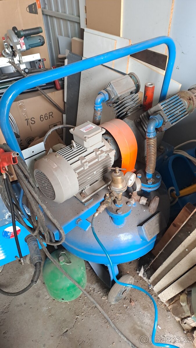 Vzduchový kompresor 80L - [2.2. 2026]Plně funkční vzduchový kompresor. Jedna láhev je opravená zavařením - ucházel z ní vzduch. Pneumatika, 3F motor, dvoupístový kompresor - vše funkční a pravidelně používané.