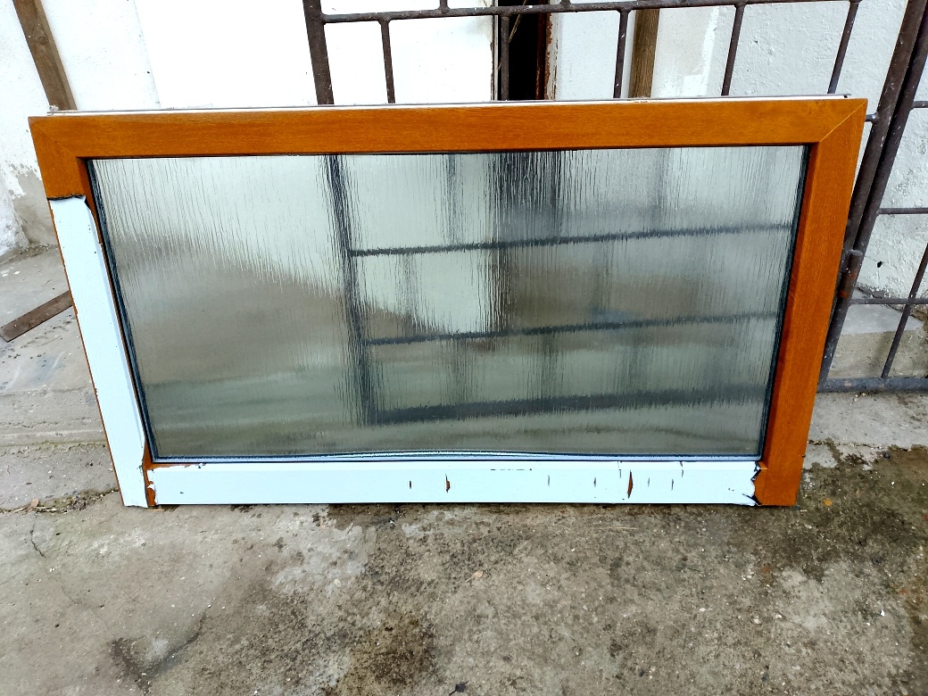 Rozměry jsou 130 x 75 cm,sklo je neprůhledné s motivem kůra,z venku hnědá zlatý dub uvnitř bílé, vlastní odvoz