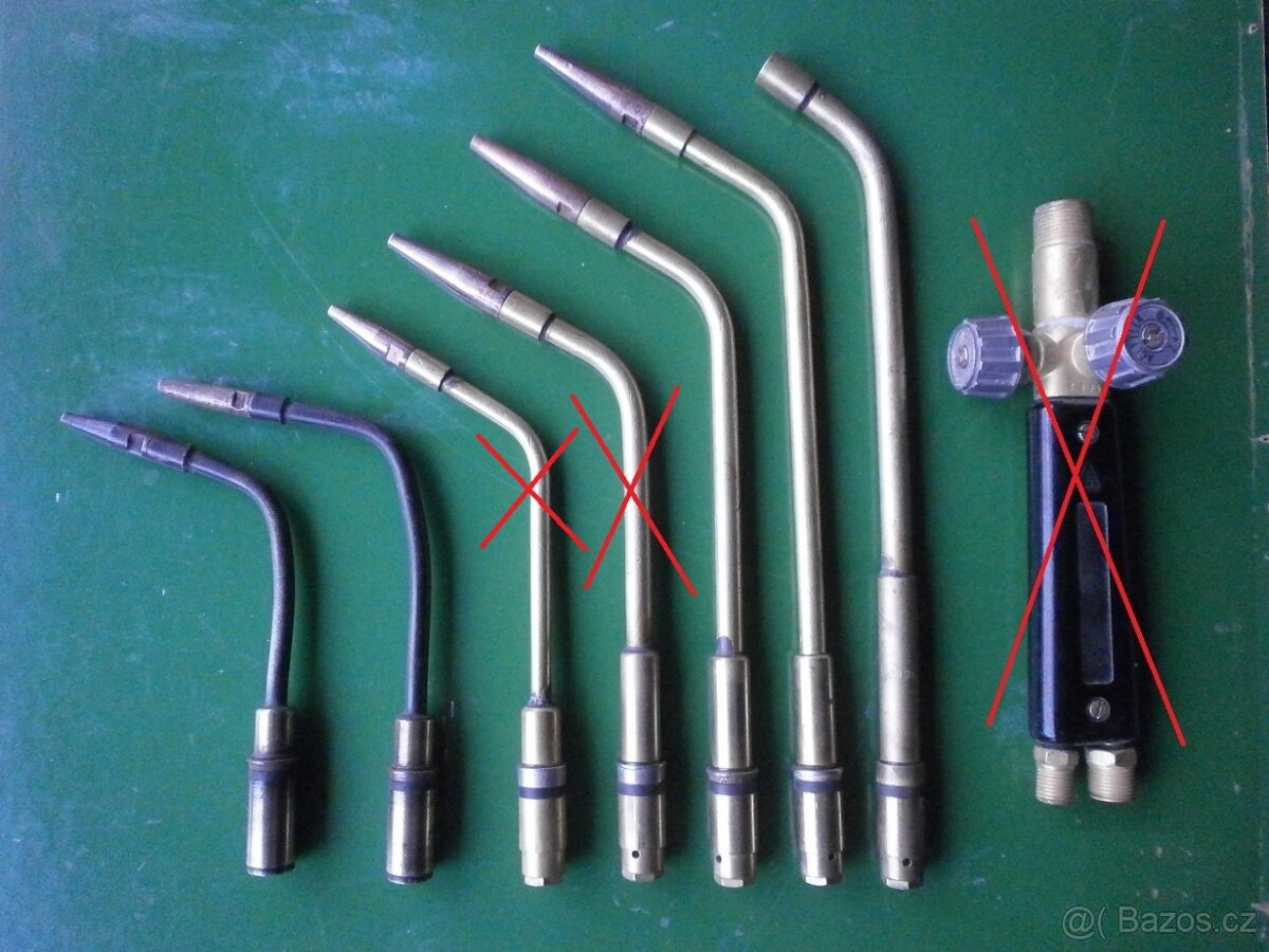 prodám klasické hořáky k autogenu pasující do obvyklé běžné rukojeti (viz foto). Nové- nepoužité: 6-9, 9-14, 14-20(bez hubice). Použité: 1-2, 2-4. I jednotlivě. Cena: nové á200Kč, použité: á100Kč.