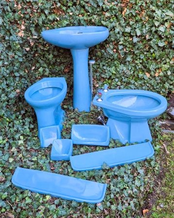 Kompletní RETRO set sanitární keramiky odstín "Bahama" (Znojmo) v bezvadném stavu.